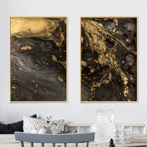 אבסטרקט שחור וזהב מושלם זוג תמונות לסלון למשרד תמונות מעוצבות מודפסות על זכוכית דגם 4015